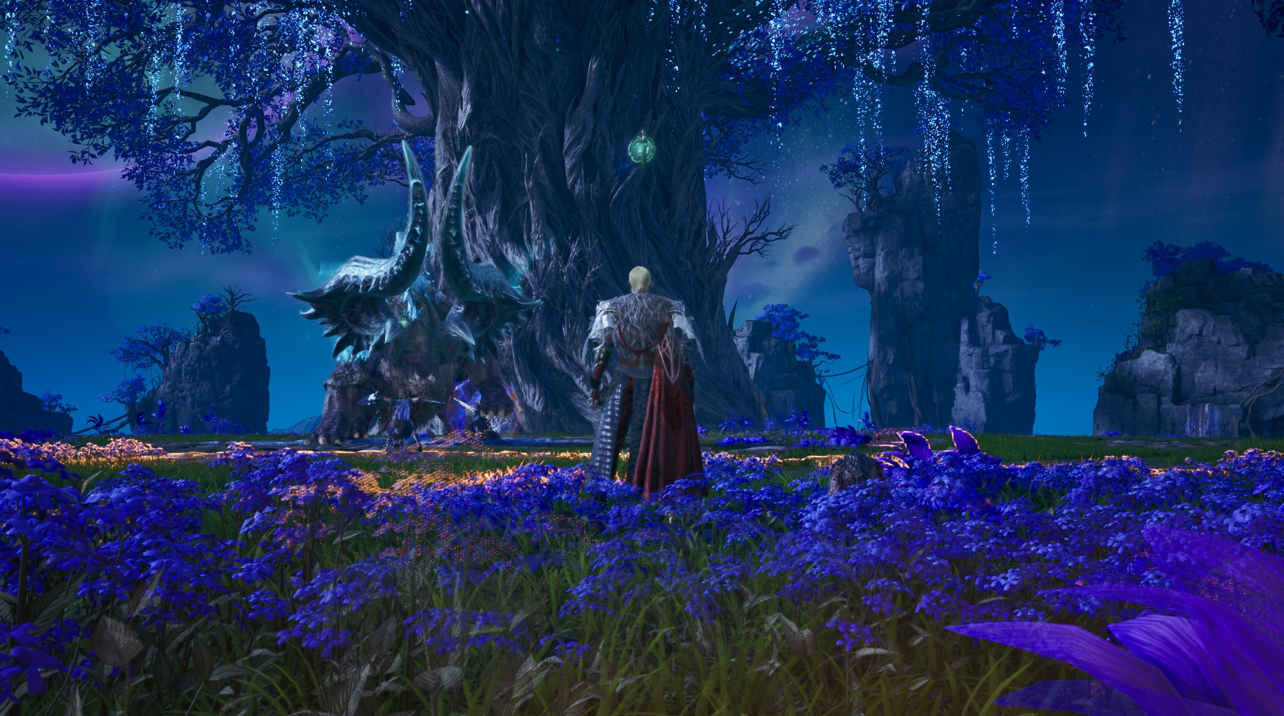 The dungeon is characterized by verticality. The main way to move between islands is by jumping on giant glowing flowers.