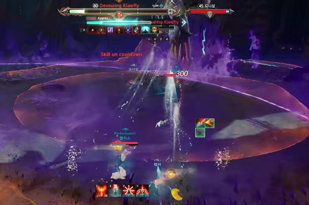 Requires damage splitting - Triple Strike - The boss strikes 3 times with a powerful AoE, in the form of expanding circles.