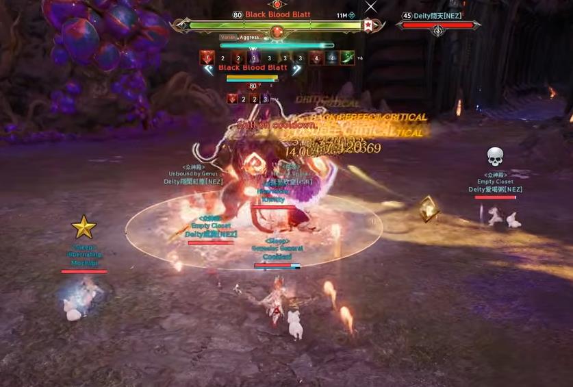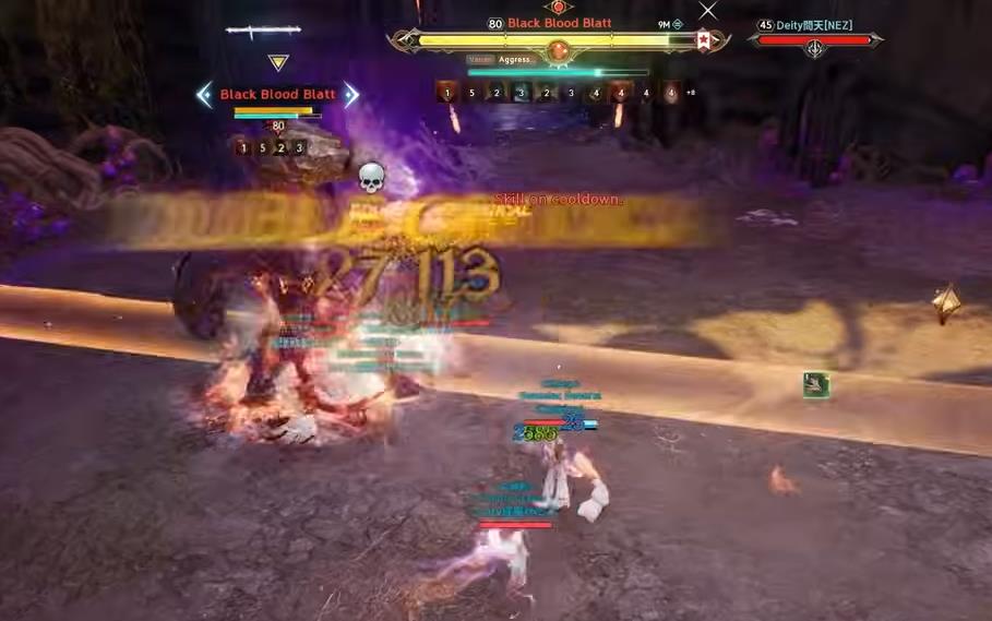 Your task is to break 5 out of 6 stones and hide behind the last one from the subsequent powerful attack, which is 100% lethal! - Each UNBROKEN stone leaves behind a poisonous field that deals huge DoT damage until the boss is killed, so it's important to break 5 stones, not fewer.